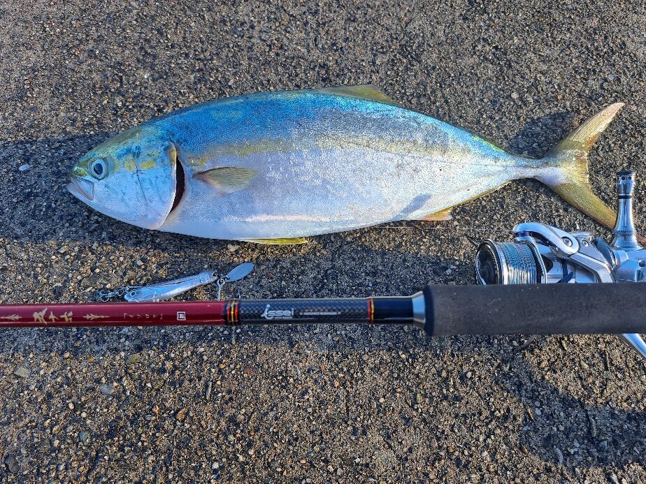 釣果情報 安川 卓 様 サカナサカナスピンH.S.T40g 2025-10-24 【ルアー】サカナサカナスピンハイスピードチューン40g(UVメッキシルバー)/五十六962M 【場所】兵庫県明石市 【日付】2025-10-15 【魚種】ハマチ 【サイズ】40 cm 【コメント】5投目でHIT♪五十六で抜き上げました♪