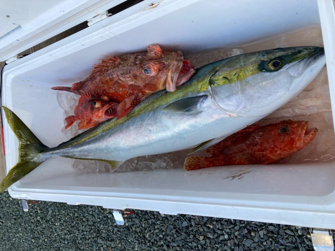 釣果情報 青木 庄太 様 ネコメタル 2026-01-13 【ルアー】ネコメタル 【場所】御前崎沖 【日付】2026-01-10 【魚種】ワラサ カサゴ 【サイズ】70 cm 【コメント】カンパチ狙いでジギングへ。 終始潮も無く渋い状況でしたが、ネコメタルでスローに誘っていると中層でワラサが食いあげてくれました。